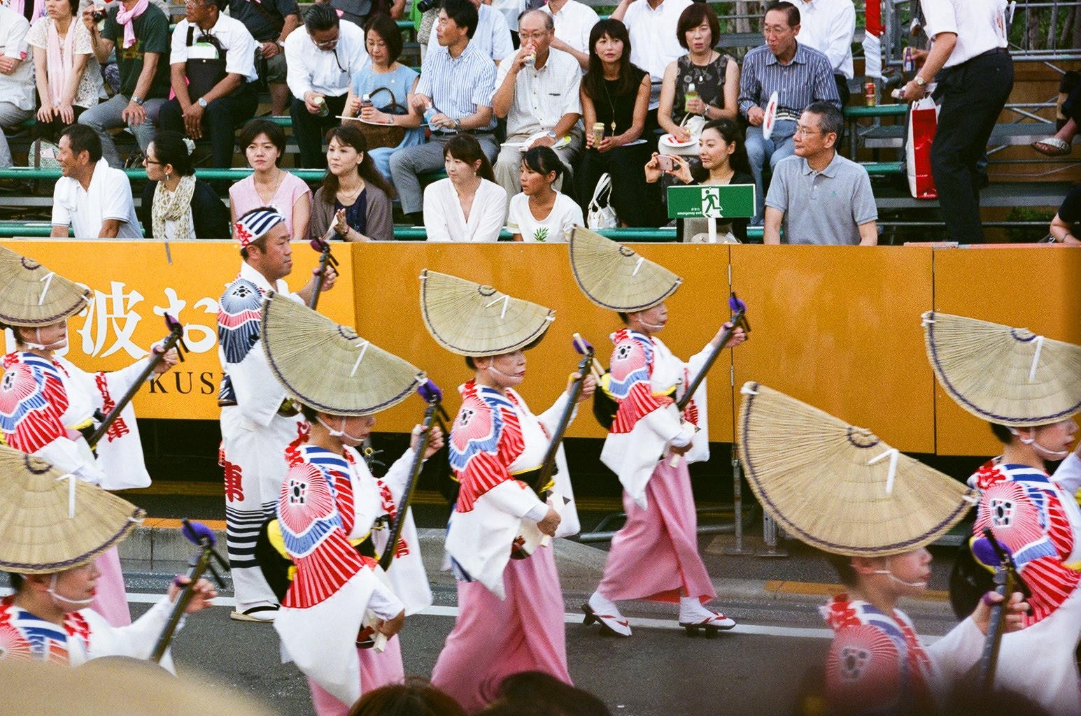 We tumbled off the bus around 5 P.M. and followed the crowds of people and sounds of music to a covered shopping arcade on the festival route. Rounding a corner, we were agape to find a massive parade of Yosakoi dancers moving in synchronization to the music.